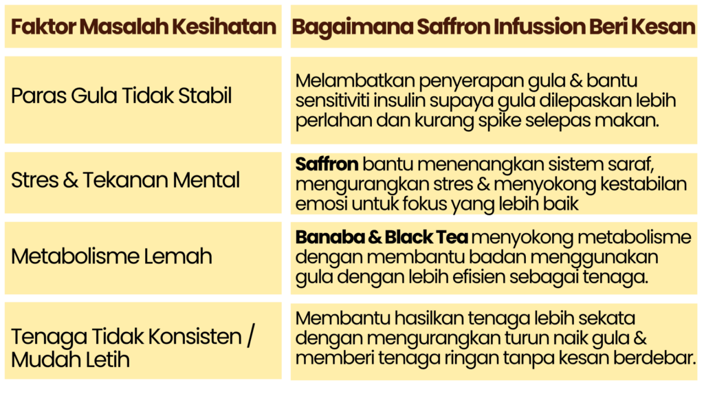 Ini adalah 4 faktor penentu masalah kesihatan & bagaimana Saffron Infusion+ beri kesan sebagai booster